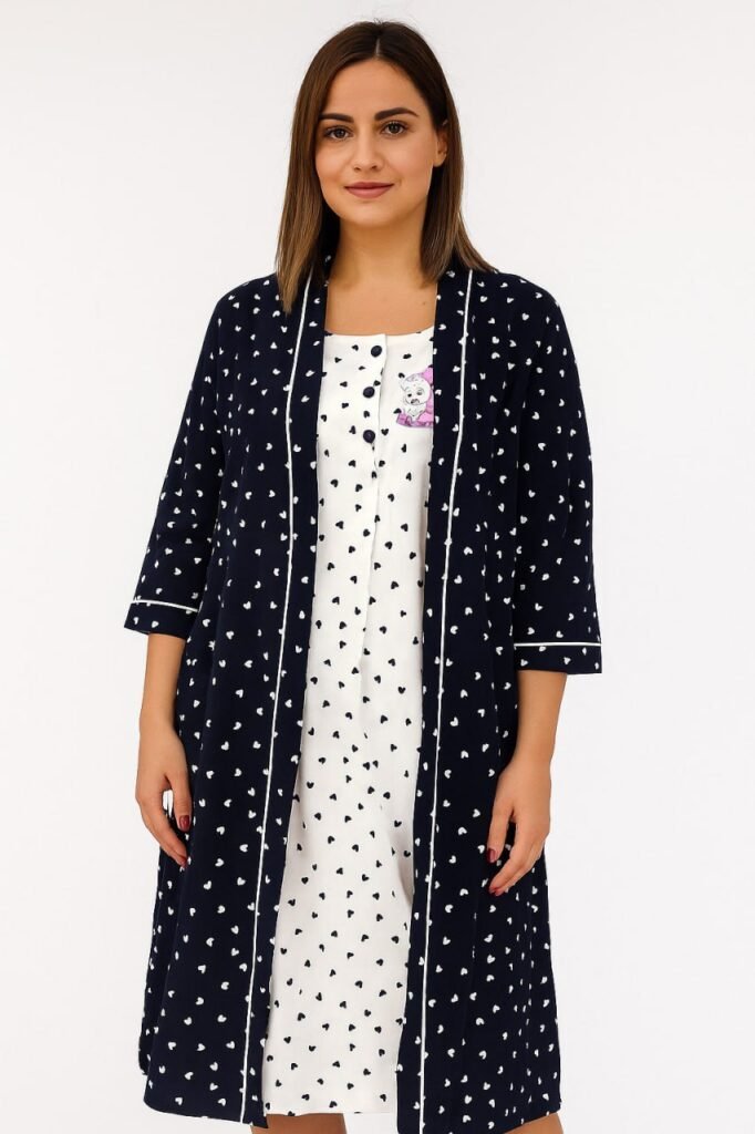 Bumbăcel îți garantează un somn dulce și relaxant cu un set dame ((capot cu mânecă lungă din bumbac și cămașă de noapte) plăcută și delicată la atingere. Disponibilitate de culori și mărimi, pe potriva fiecărui gust.