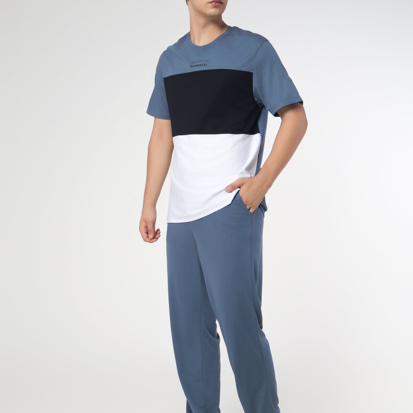 Set pantaloni și tricou pentru bărbați cu buzunare din bumbac